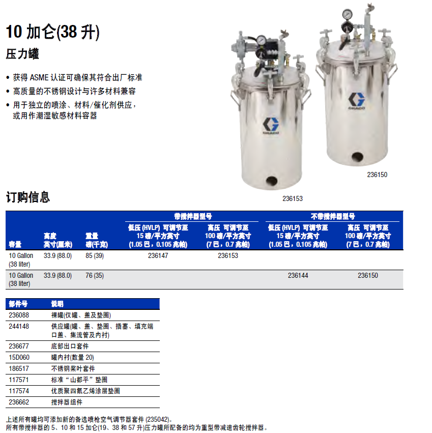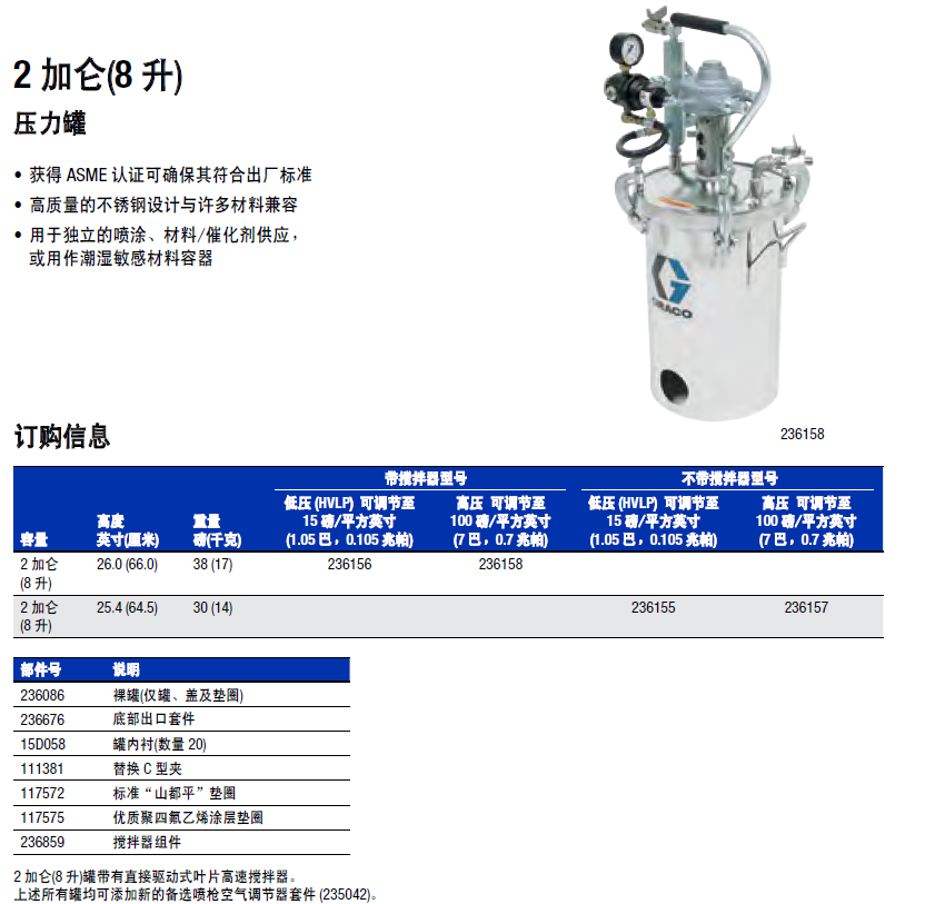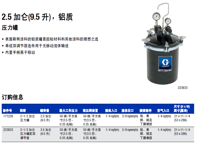 固瑞克(GRACO)压力罐