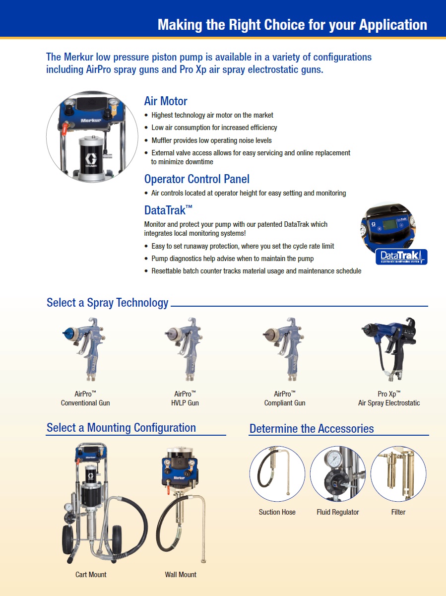 使用 Merkur 低压套件为您的精加工应用做出正确的选择。Merkur 低压柱塞泵采用先进的空气喷涂技术。