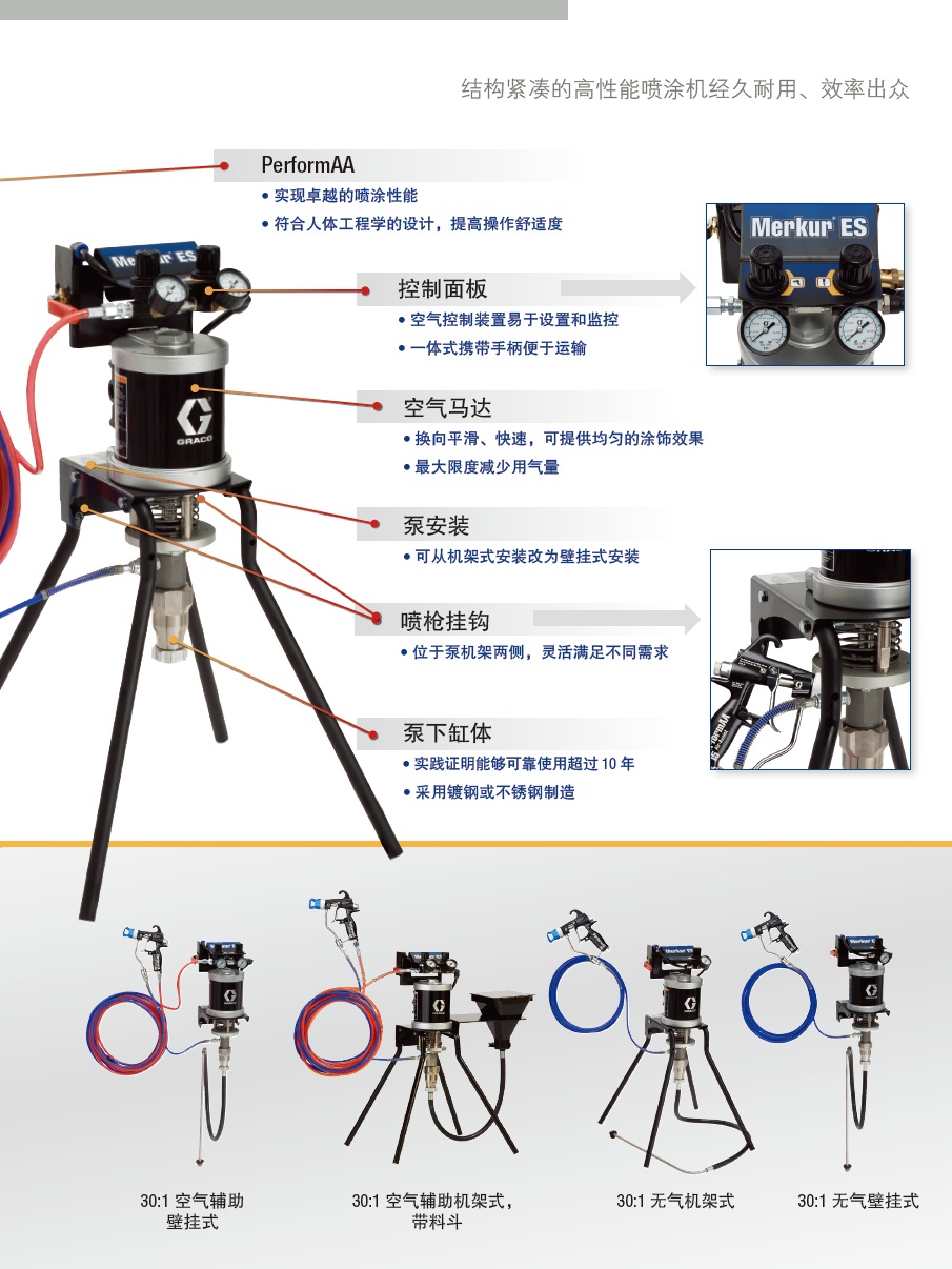 固瑞克(GRACO) Merkur ES 30:1 柱塞泵式AA(空气辅助式)精饰型喷涂机-入门级