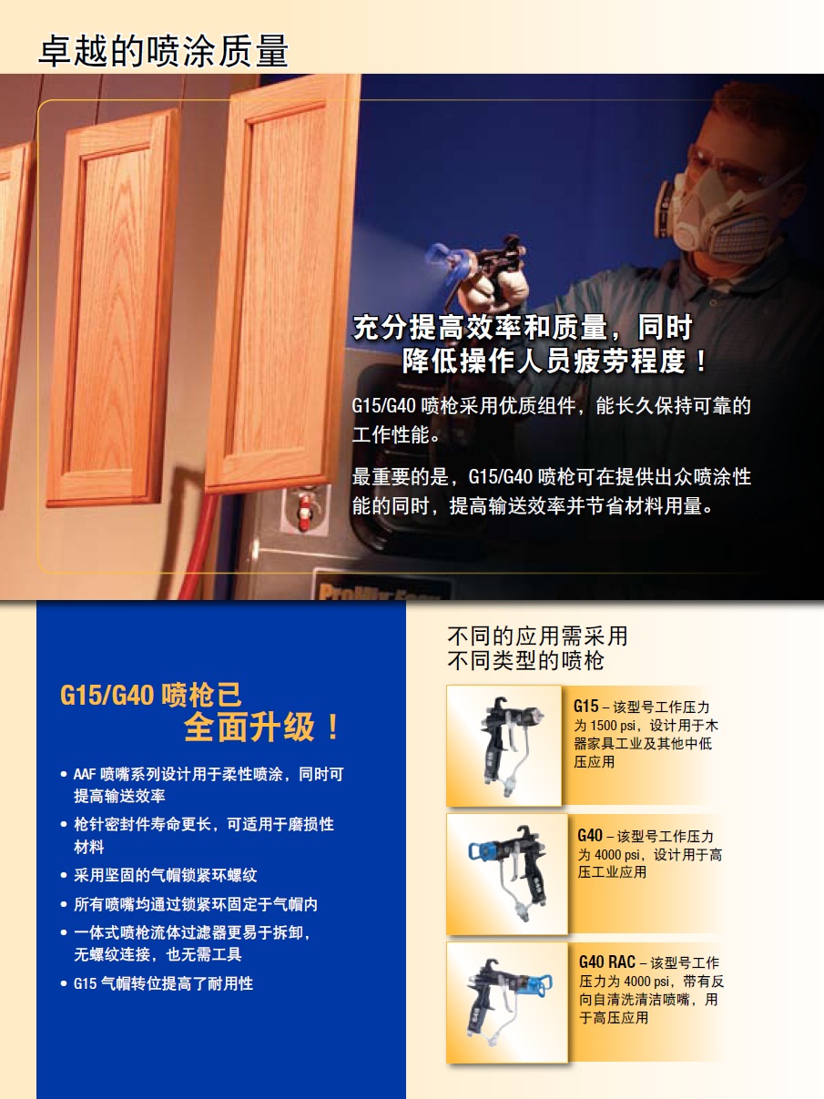 固瑞克(GRACO) G40 高压 AA 空气辅助雾化喷枪(配RAC 反向自清洗喷嘴)