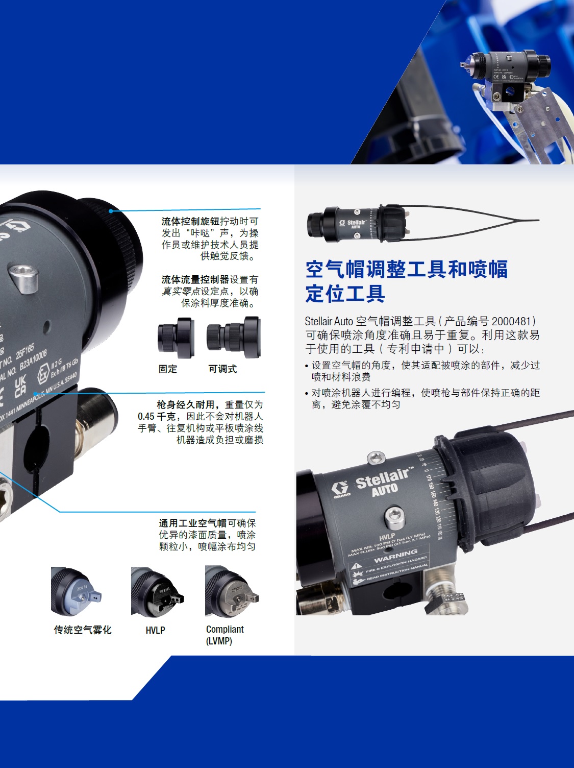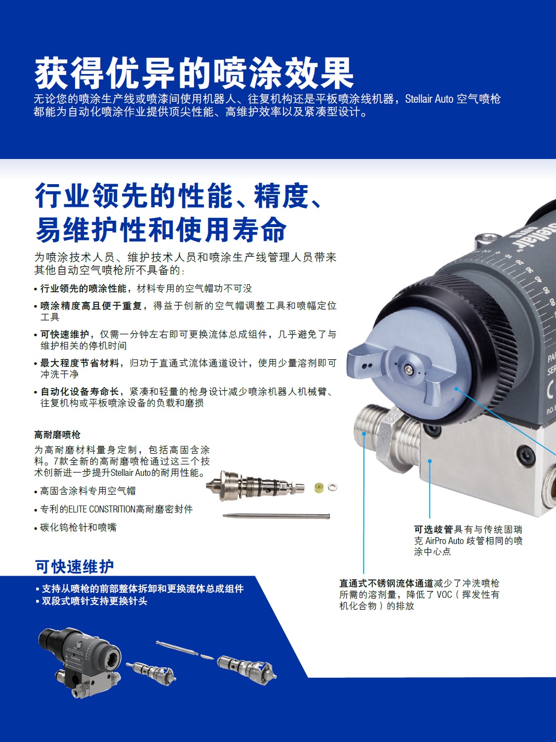 行业领先的喷涂性能, 这得益于材料专用的气帽