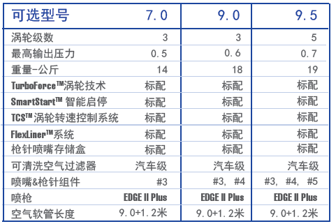 ∙独有的专利涡轮设计使得每一级都可获得更高的压力,进而使喷枪的工作性能提高 30% 以上。