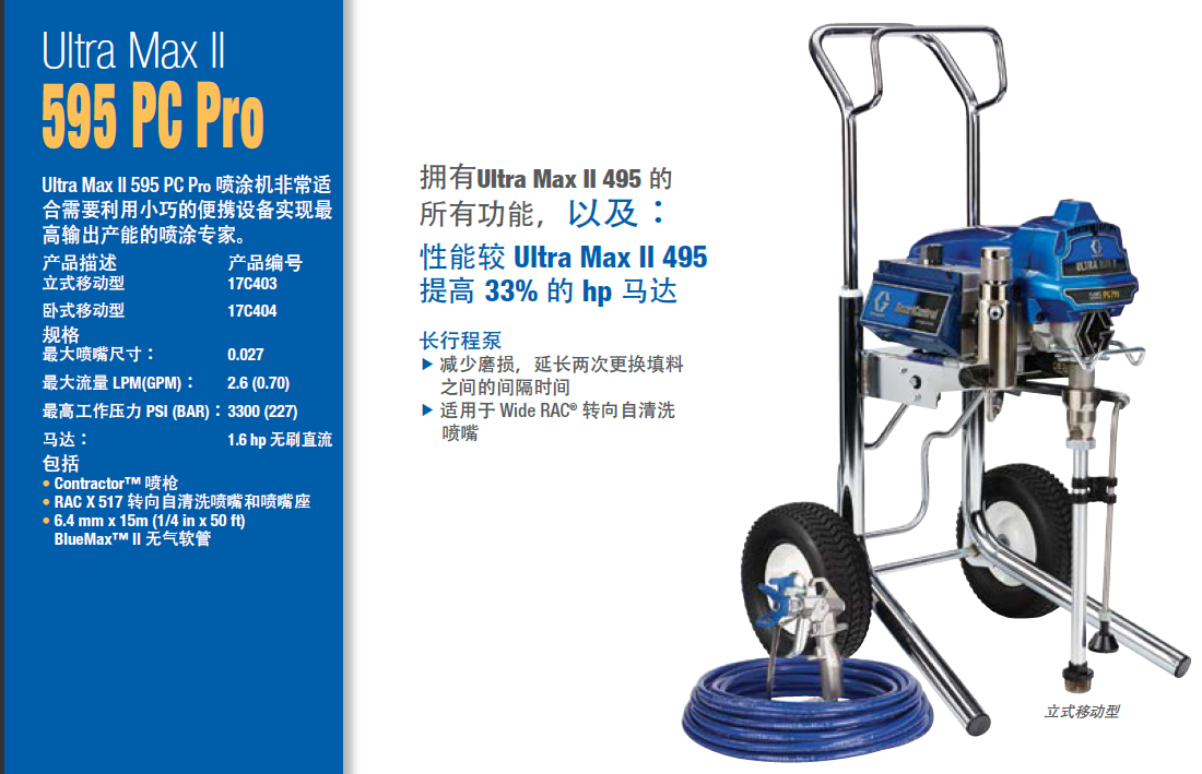 Ultra Max II 595 PC Pro 喷涂机非常适合需要利用小巧的便携设备实现最高输出产能的喷涂专家。
