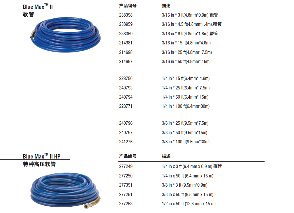 要达到最佳效果,请选用 BlueMax™ II 高性能无气软管。 BlueMax II 具有绝佳的灵活性和耐用性,可保证您的无气喷涂机达到最佳的喷涂效果。