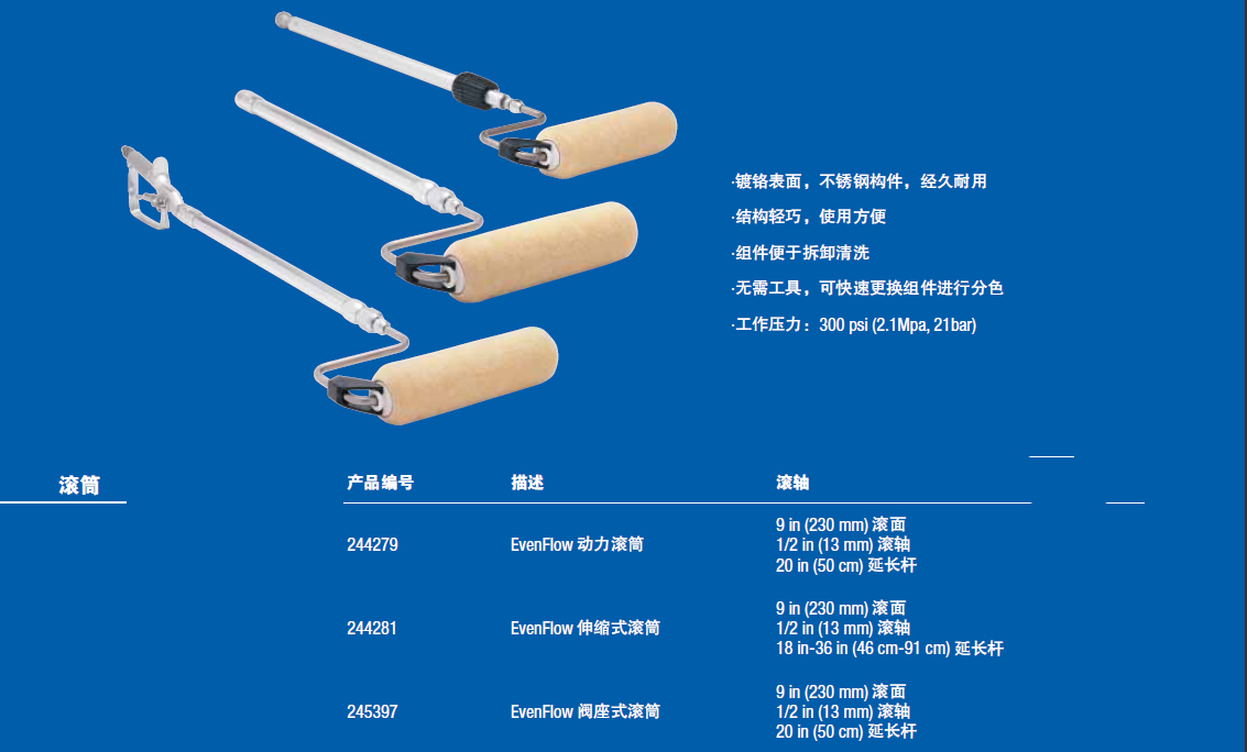 独特的 EvenFlow 设计可将涂料均匀的分布在滚筒上,从而获得更持续平滑的涂装效果。